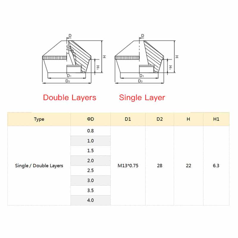 | B-D32H15 Chrome-plated Double layer | 32 | 15 | 0.8-5.0 | M14 | |